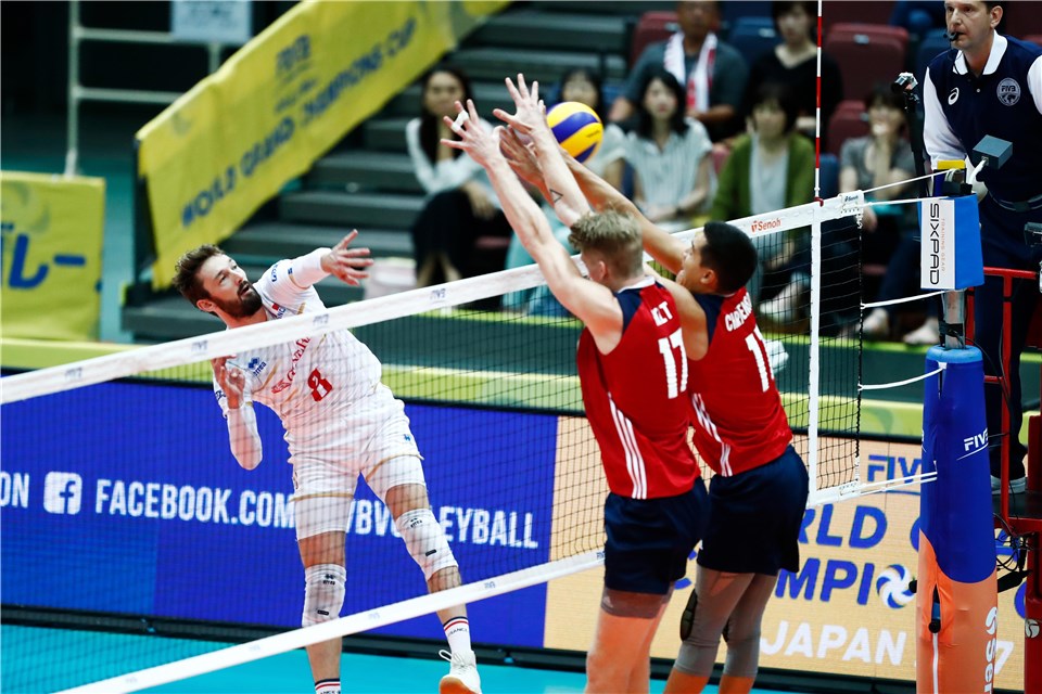 Волейболистите от националния отбор на САЩ постигнаха неочаквано изразителна победа над победителите в Световната лига от Франция с 3:0 (25:20, 25:17, 25:16) в среща от 3-ия кръг на турнира Grand Champions Cup 2017, която се игра в зала “Мунисипал Сентрал Джимнезиъм” в Осака (Япония) пред 5300 зрители.