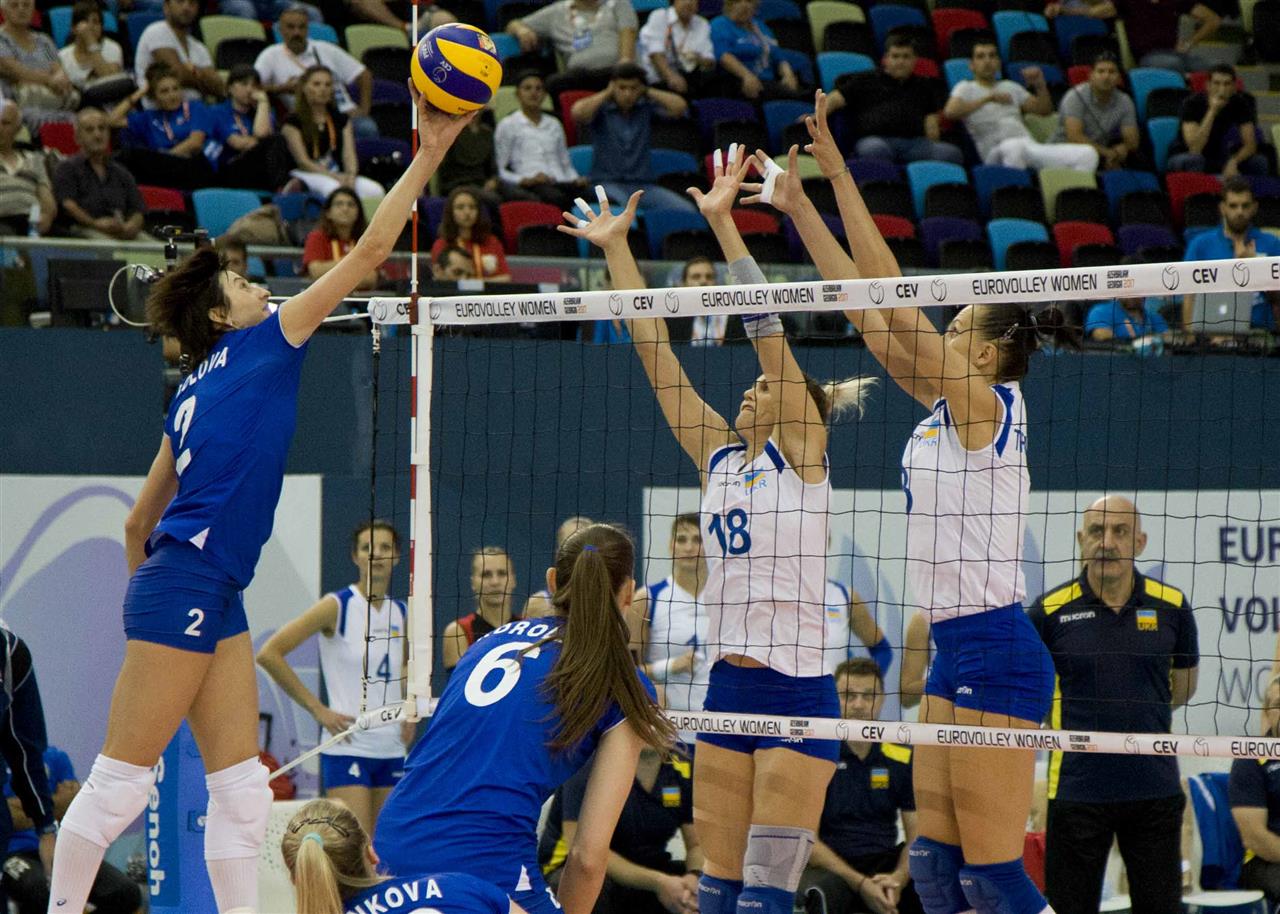 Волейболистките на Украйна измъчиха европейските шампионки от 2013 и 2015 година от Русия в първата среща от Група С на Евроволей 2017 в Грузия и Азербайджан. “Сборная” се справи много трудно с Украйна с 3:2 (25:18, 20:25, 25:23, 23:25, 13:15) в мач от 1 кръг, който се игра пред 4100 зрители в “Националната гимнастическа арена” в Баку.