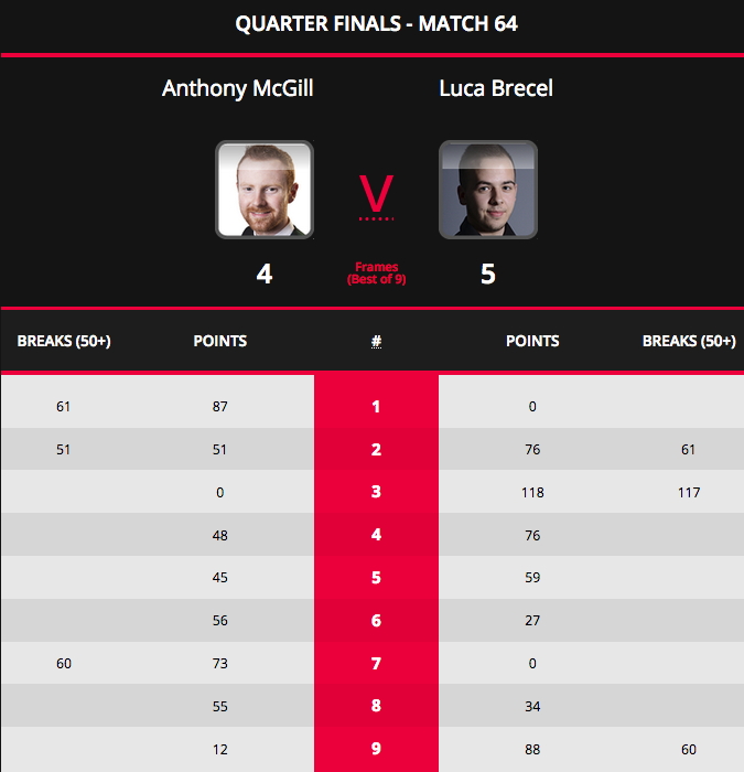 Люка Бресел отново се класира за полуфинал на голям ранкинг турнир в Китай, като ще преследва втора поредна титла на територията на страната след успеха си в Шампионата на Китай миналия месец. Той срази Антъни Макгил с 5:4 в най-дългия от четвъртфиналните сблъсъци за деня, но следващият му опонент ще е именно устремения към успеха на родна земя Дзюнхуей.