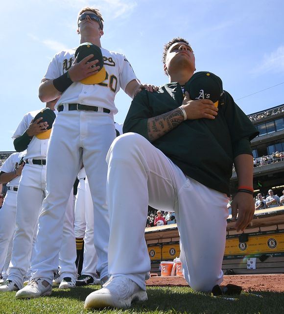Кетчерът на Оукланд Атлетикс Брус Максуел стана първият бейзболист в МЛБ, който се включи в протеста на професионалните спортисти в САЩ срещу политиката на президента Доналд Тръмп спрямо имигрантите и срещу полицейското насилие спрямо чернокожи. В два поредни дни новобранецът в състава на "А"-тата демонстрира позицията си, като коленичи по време на изпълнението на националния химн преди мачовете срещу Тексас Рейнджърс от домакинска серия в редовния сезон.