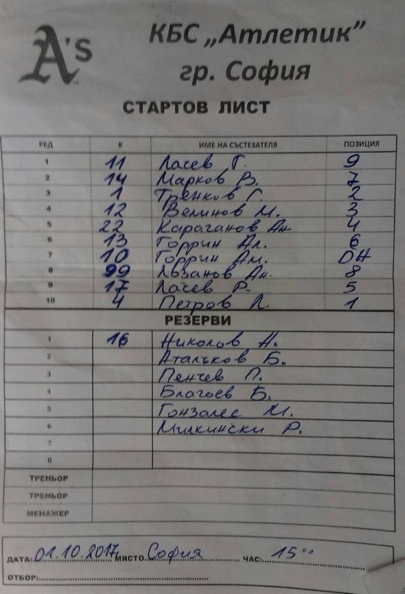 Ангел Лозанов завърши с 3 RBI, Румен Лачев вкара 2 точки, а Александър Горрин батира 2 от 3 с 2 бази за боли и 4 отбелязани точки за Атлетик. За Бизони с по 3 RBI допринесоха Петров и Ангелов, а Шопски удари 3 от 5 с RBI и точка.