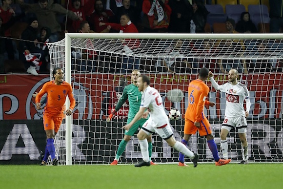 Холандия взе очаквана победа при гостуването си над Беларус и запази минимални шансове за второто място в група "А" от световните квалификации. "Лалетата" се наложиха с 3:1 и изостават с 3 точки от Швеция преди прекия двубой помежду им в Амстердам. Шведите обаче имат с цели 12 гола по-добра голова разлика, а именно тя е от решаващо значение за крайното класиране при равни точки.