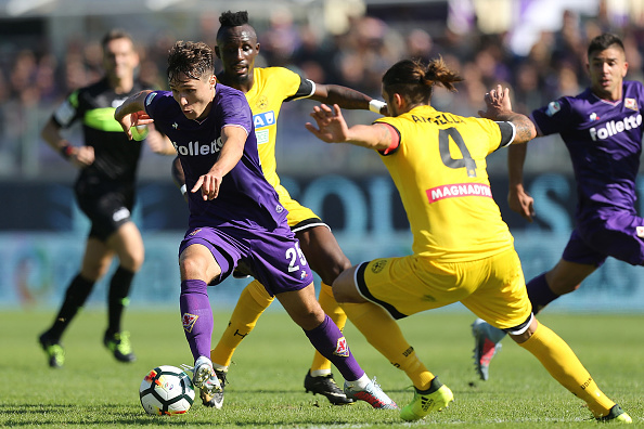 В 28-ата минута Джовани Симеоне свали топката с глава за Сирил Теро след центриране отдясно на Федерико Киеза и френският нападател от съвсем близко разстояние изведе “виолетовите” напред в резултата.
