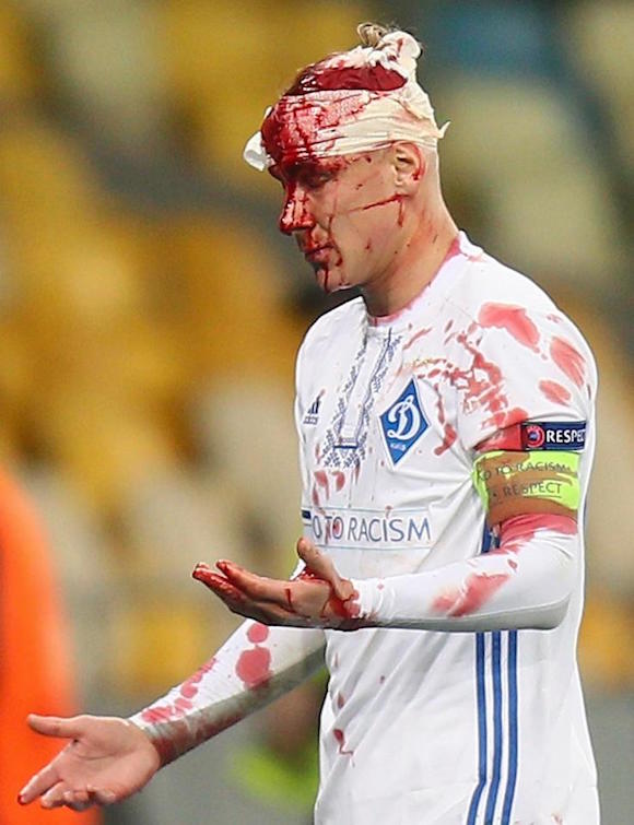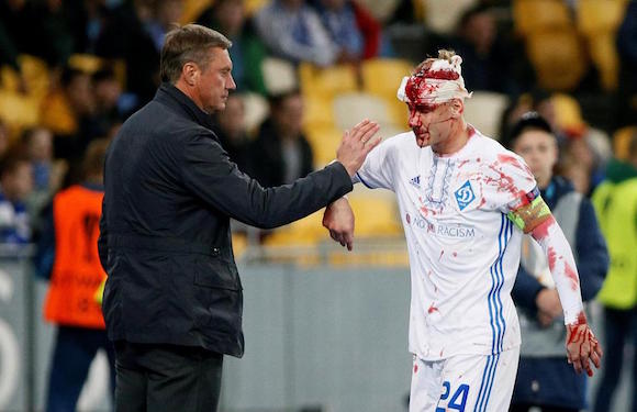 Футболистът на Динамо (Киев) Домагой Вида получи ужасяваща контузия в главата. Универсалният защитник беше принуден да напусне терена 10 минути преди края на мача с мача с Йънг Бойс (2:2) от груповата фаза на Лига Европа.