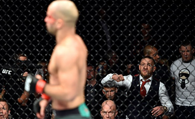 Докато се опитваше да успокои приятеля си след загубата му, Макгрегър на няколко пъти нарече опонента му Андре Фили "пе*ал". Видео от тази случка дори беше качено на официалната страница на UFC в Туитър, но малко след това материала беше свален.