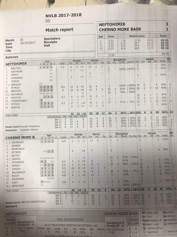 Валентин Братоев завърши с 18 точки за Нефтохимик, докато Георги Петров добави 17 точки. За Черно море Стефан Иванов завърши с 18 точки.