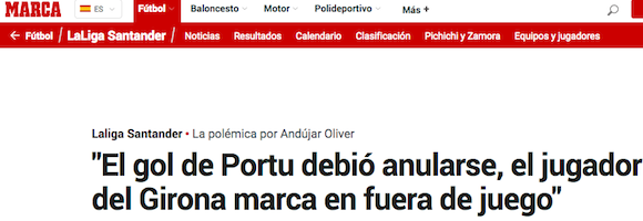 Вторият гол на Жирона във вратата на Реал Мадрид е от засада, категорични са съдийските анализатори в Испания. Стопкадрите показват, че Порту е пред защитата на “лос бланкос”, като най-много един човек е по-напред. Ако вратарят Кико Касийя е зад нападателя, поне двама полеви играчи трябва да покриват засадата.