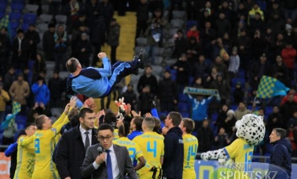 Старши треньорът на Астана Станимир Стоилов бе понесен на ръце, след като тимът му пренаписа историята и спечели за четвърти пореден път титлата на Казахстан.