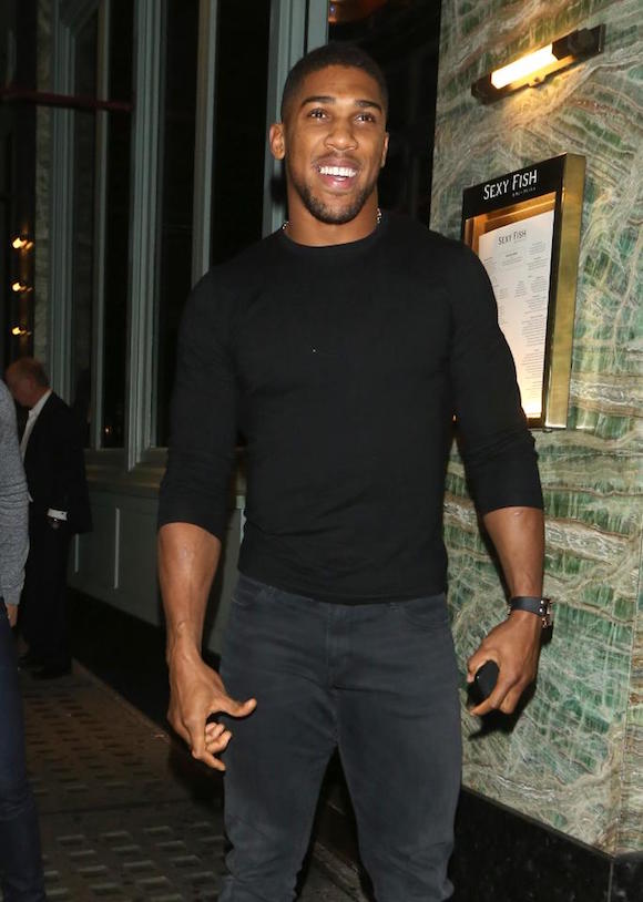 Антъни Джошуа отпразнува победата си над Карлос Такам в мъжка компания. В неделя световният шампион по бокс в супертежка категория на IBF, WBA, IBO събра приятели в лондонския ресторант Sexy Fish. Британецът беше щастлив да позира за снимки пред азиатския ресторант в баровския квартал "Мейфеър", показвайки усмивка за милион долара.