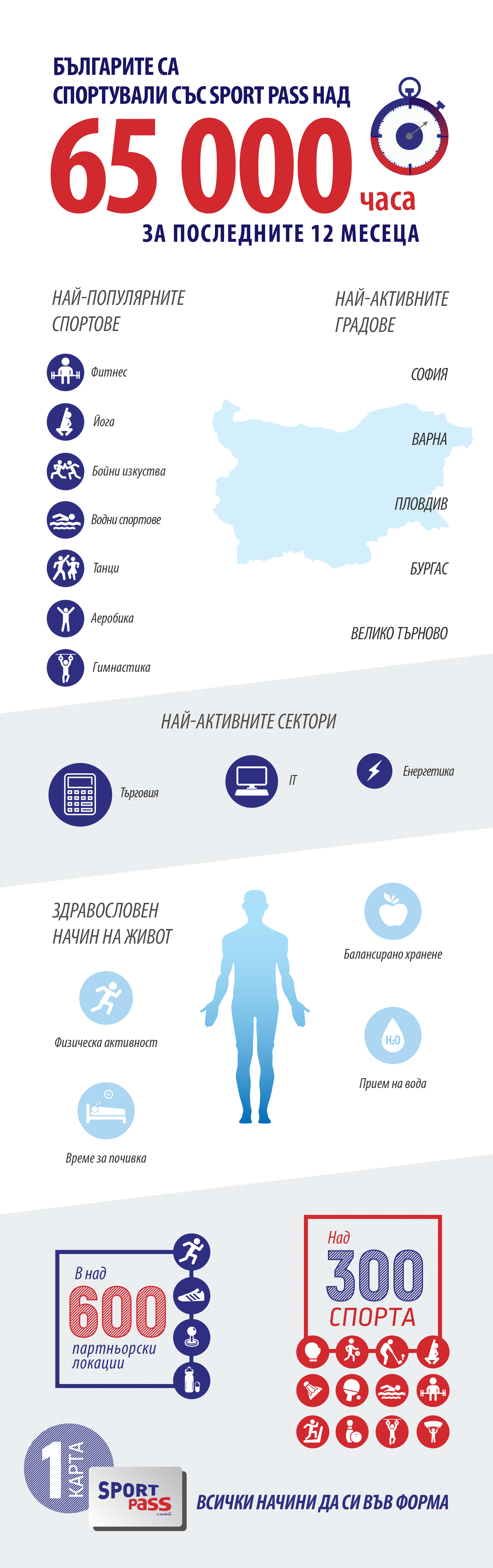 През последните 12 месеца Sport Pass мотивира повече от 11 000 работещи българи да влязат във форма, помагайки им да бъдат физически активни в продължение на общо над 65 000 часа. Според Содексо България, най-популярните спортове и начини на движение сред потребителите на Sport Pass са фитнес, йога, аеробика, танци, водни спортове, бойни изкуства и гимнастика. Средната посещаемост на спортни занимания в страната е около 6 пъти месечно. По отношение на бизнес отрасли, най-активните потребители на Sport Pass работят в търговията на дребно и едро, следвани от ИТ сектора, енергетиката, леката и тежка промишленост, финансите и застраховането.
