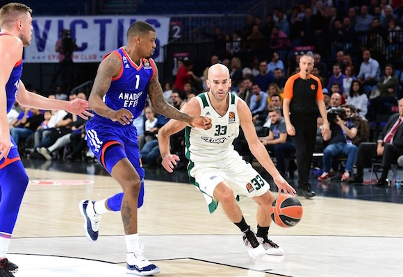 Ник Калатес отбеляза тройка 48 секунди преди сирената за победа на Панатинайкос с 82:81 (28:21, 20:23, 14:16, 20:21) срещу Анадолу Ефес в Истанбул. Това беше и последният кош за гърците, след който Брайънт Дъстън намали изоставането на турците на една точка, но Ерик Макколъм пропусна стрелба в полето на ПАО само две секунди преди сирената.