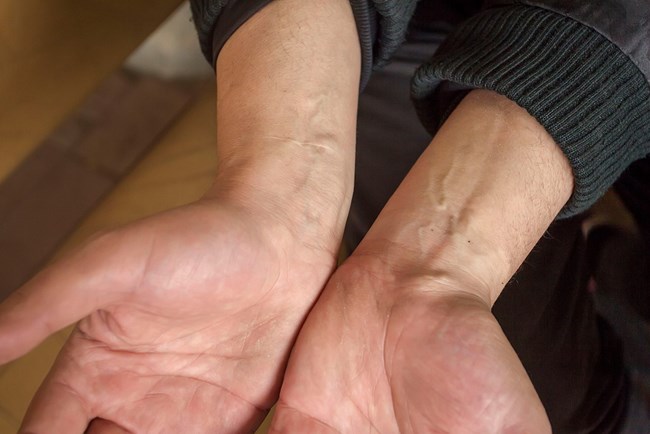 Таланта показва белезите от прерязаните си вени Снимки: Пламен КОДРОВ