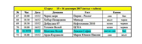 3. Среща №71 между отборите на Монтана и Левски ще бъде с начален час 18,30 часа на 15 декември (петък). Срещата ще бъде с телевизионно излъчване.