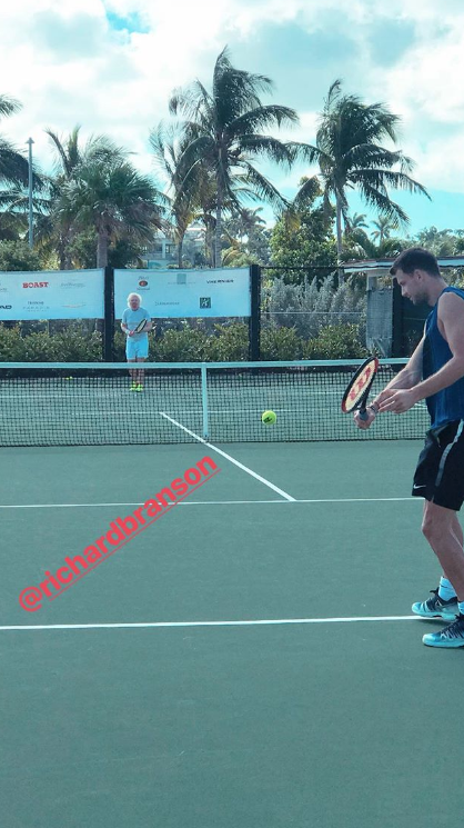 След като вчера 3-ият в световната ранглиста българин помогна на голф легендата Грег Норман да запише първа победа на корта, днес той поигра тенис и със самия Ричард Брансън. Двамата се забавляваха много, а Григор не пропусна да му покаже своя любим “хот-дог” - удар с гръб към корта между краката.
