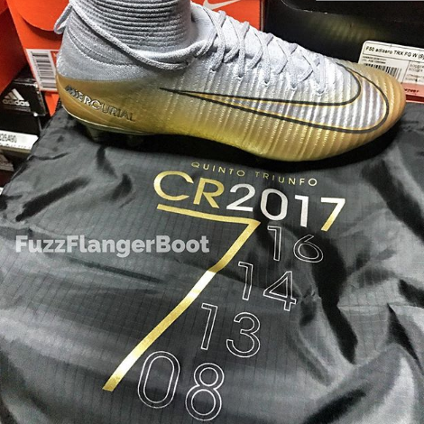 На въпросното фото се виждат футболна обувка от марката, която нападателят носи, както и надписи към нея “Петият триумф” и CR 2017. В допълнение са посочени “16, 14, 13, 08”, което отговаря на годините, в които португалецът получи предишните си четири “Златни топки”.