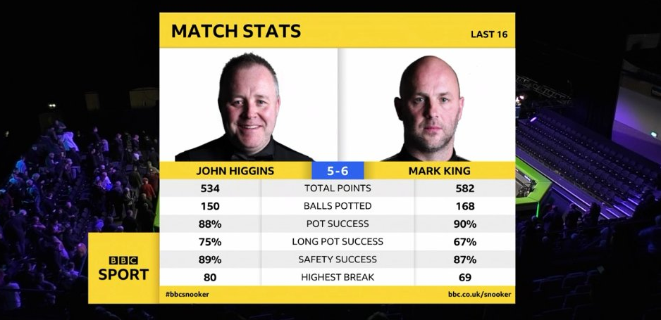 Mark King had a stunning win over three-time champion John Higgins in the last 16 at the UK Championship earlier...