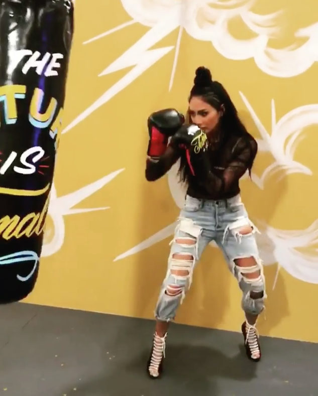 И демонстрира не лоши умения срещу боксовата круша. Дори и на високи токчета Никол направи няколко доста добри удара.