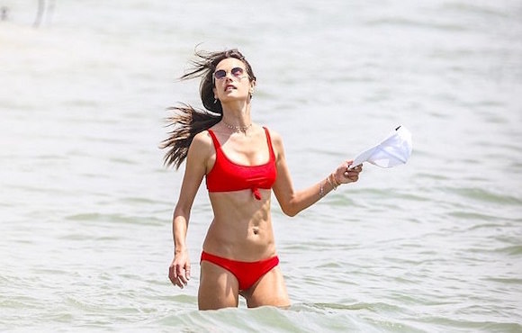 Тя е една от най-известните модели в света и главно действащо лице в шоуто на “Victoria’s Secret” в продължение на 10 години. Алесандра Амброзио вече се “пенсионира” от работата си на “ангел”, но последните снимки от почивката й в Южна Бразилия, доказват, че тя все още е точно такъв. 36-годишната брюнетка бе заловена от папараци на плажа в слънчевия курорт Флорианополис по червен бански от две части. Въпреки че се къпа в океана обаче, Алесандра не бе пропуснала да си сложи елегантно колие с камъчета, обици и няколко гривни.