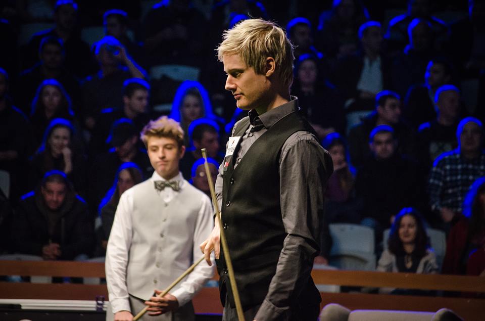 И Тръмп, и Робъртсън бяха с непрестанни усмивки, докато изпълняваха първите си удари в двубоя, защото снукър по двойки е нестандартно преживяване дори за професионалистите. По правило се играе "през удар" и съответно, ако някой вкара червена, то партньорът му следва да комбинира с цвят и т.н. Дори в началните изпълнения на асовете личеше, че има умора в тях и не са застраховани срещу пропуски.