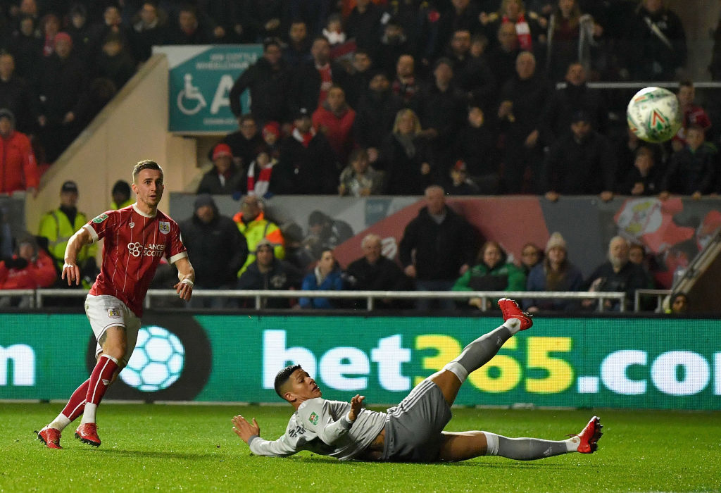 Жозе Моуриньо направи 10 промени от последния мач на Юнайтед, но в игра след наказание се завърна Пол Погба, а Златан Ибрахимович изведе отбора с капитанската лента. Този състав на "червените дяволи" обаче не успя преодолее съпротивата на Бристол Сити, който взриви трибуните на "Аштън Гейт Стейдиъм". Тимът, воден от Лий Джонсън, записа четвърта поредна победа с 2:1.
