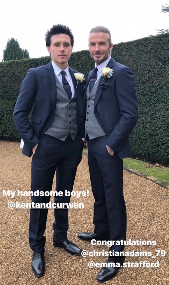 Виктория Бекъм обича да показва в социалните мрежи колко е горда със семейството си и не изневери на стила си и по време на сватбата на брат й. Последното, което дизайнерката публикува в “Инстаграм” беше снимка на съпруга си Дейвид и най-големия си син - Бруклин, на която двамата позират облечени в абсолютно еднакви тъмносини костюми. “Моите красиви момчета!”, написа Пош.