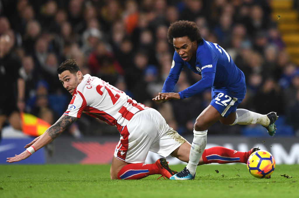 Челси постигна седма поредна домакинска победа във Висшата лига, след като спечели с 5:0 срещу Стоук. Отборът на Антонио Конте освен това в четвърти пореден двубой от първенството не допусна гол. Така временно "сините" се изкачиха на второ място в класирането, изпреварайки Манчестър Юнайтед, който играе по-късно днес.