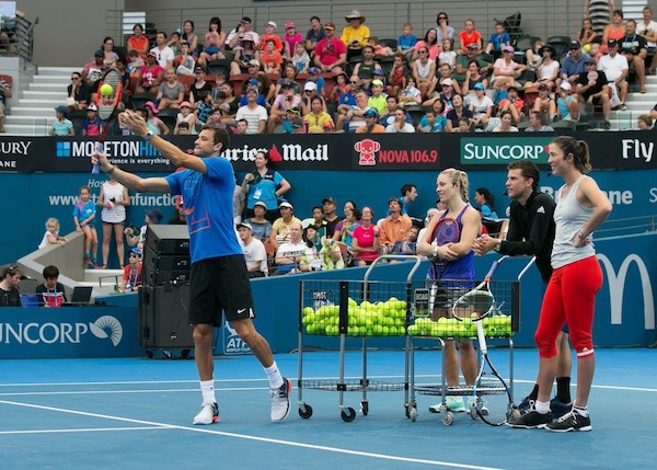 Междувременно първата ни ракета се включи в открито шоу, посветено на децата в Бризбън. Компания на Димитров правиха Доминик Тийм, световната №1 Анжелик Кербер и шампионката на "Ролан Гарос" Гарбинье Мугуруса.