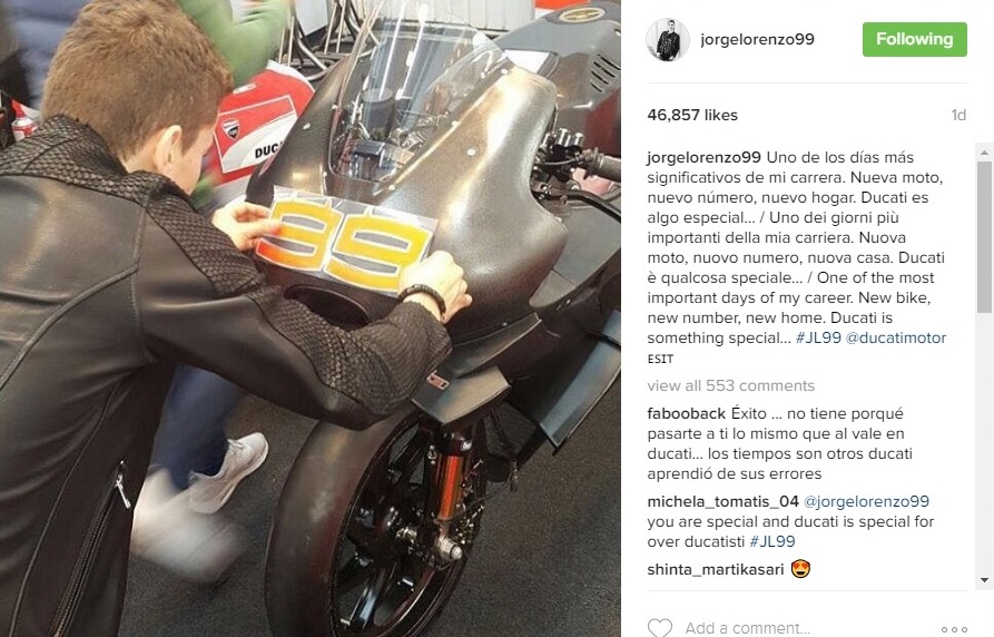 На първия тестови ден във Валенсия Лоренсо остана с трето най-бързо време, а на втория ден – с осмо. Именно заради това много хора коментират, че за да успее да се приспособи както трябва, Лоренсо ще се наложи да промени стила си. Той далеч обаче няма такова намерение.