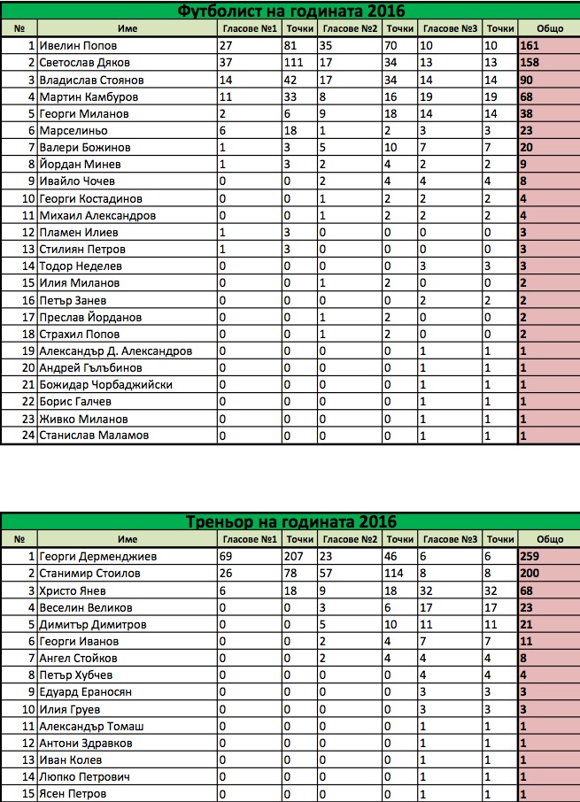 Футболист №2 с много повече първи места от Футболист №1 на България (пълната разбивка на класацията)