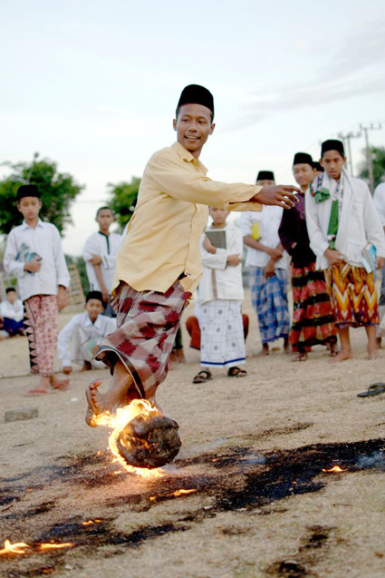 „Тук така посрещаме Рамазана – признава 13-годишният Богор, с белези по краката, но не от бутони, а от изгорено. – Не изпитвам болка, защото преминах изпитанието и мога да играя с огнената топка цяла вечност.“