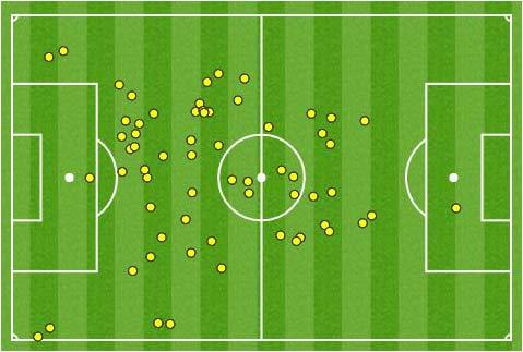 Той е тотален футболист. Графиката за докосванията на Ла Пулга на терена ясно показва, че номер 10 е е бил с топката почти навсякъде по игрището. Южноамериканецът е играл 63 пъти с топката, дал е 38 подавания, само пет от които грешни. Любопитното е, че Меси е стрелял два пъти в очертанията на вратата. При първия си шут вкара зрелищен гол, а при втория беше много близо до нов шедьовър от пряк свободен удар, но Мигел Анхел Моя показа забележителен рефлекс.