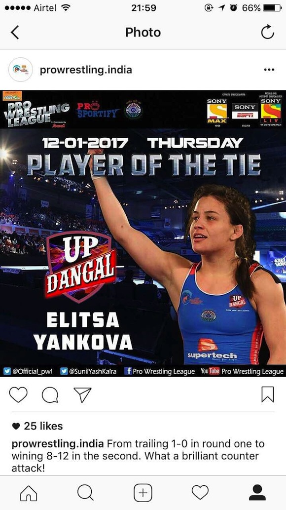 За това време най-древният спорт се изравни по гледаемост в Индия до най-тиражираните филми в Боливуд. Фойерверки, ефектна музика, пищно светлинно шоу, зрелищни хвърляния...Всичко това предложи местната Професионална лига по борба. Интересът към състезанието бе толкова голям, че всеки ден схватките се предаваха на живо по местната телевизия в праймтайм - от 19 до 21 ч. А Елица получи главна роля в спектакъла и стана първата българска звезда на шоуто.