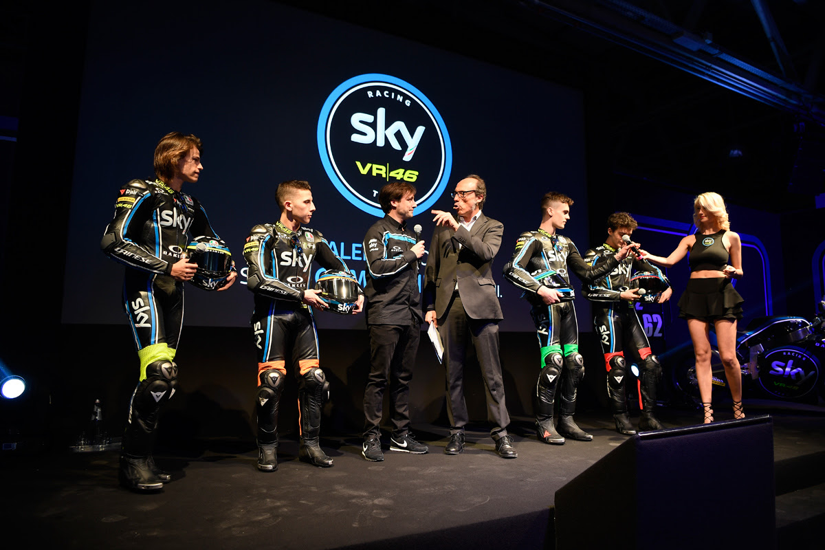 Милано бе сцената за представянето на един от най-вълнуващите отбори от Гран При шампионата. Sky Racing Team VR46 показа не само двете познати лица от Moto3 – Николо Булега и Андреа Миньо, но също така и новия екип в Moto2 – Пеко Банaя и Стефано Манци.