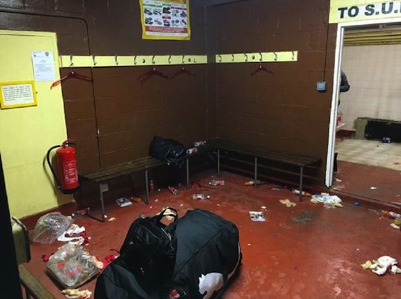 От Сътън Юнайтед се оплакаха от немарливото отношение на отбора на Арсенал след мача между двата тима от турнира за Купата на Англия. В понеделник вечер елитният тим спечели с 2:0 като гост, но хигиената на играчите не се оказа на елитно ниво. Аматьорите разпространиха снимки на съблекалнята на Арсенал след тръгването на тима на Арсен Венгер. Вижда се, че е пълно с бутилки и ролки от тоалетна хартия.
