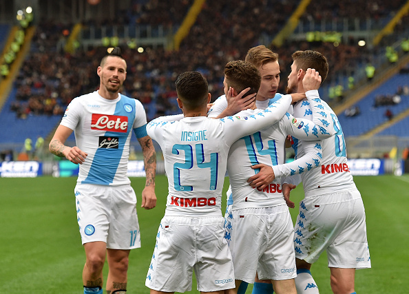 В 26-ата минута Дрис Мертенс получи прекрасен извеждащ пас от Марек Хамшик, озова се очи в очи с Войчех Шчесни и майсторски копна топката, изпращайки я във вратата на "вълците".