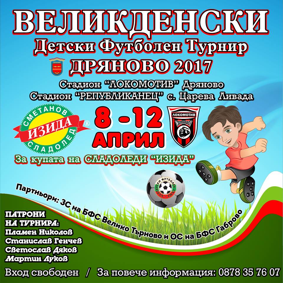 По случай Великден и 90-години организиран футбол в Дряново, Футболен клуб „Локомотив 1927” Дряново организира от 8 до 12 април Великденски детски футболен турнир.