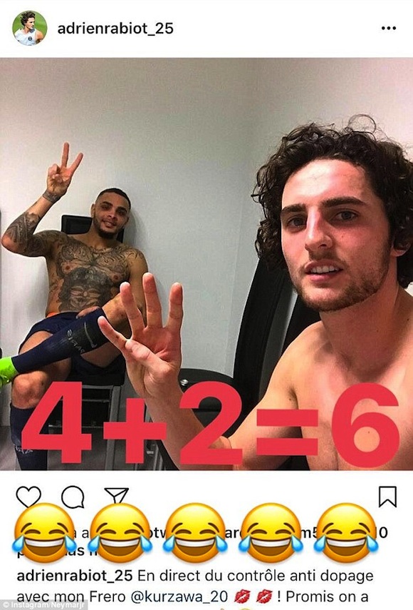 Малко след двубоя Неймар публикува в една от социалните мрежи любопитен колаж. Той използва снимка на халфа на ПСЖ Адриен Рабио, направена след двубоя на "Парк Де Пренс". На нея Рабио показва 4 пръста (колкото гола вкараха парижани във вратата на Барселона), а съотборникът му Лайвин Курзава позира със знака на победата.
