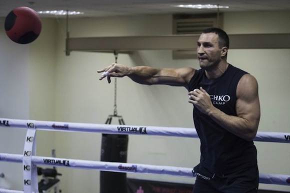 Украинският боксьор Владимир Кличко, на когото на 29 април му предстои среща на ринга със световния шампион на IBF Антъни Джошуа, продължава подготовката си за мача.