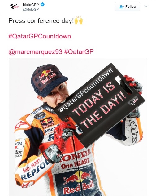 "Винаги в това първо състезание има доста повече нерви от обикновено. Катарската писта е една от най-специалните, въпреки че може би не е най-добрата за моя стил на каране. Все пак я харесвам и смятам, че свърших доста работа през зимата, за да намеря правилния си ритъм", сподели Маркес, който за трети път ще започне сезона, защитавайки такава титла.