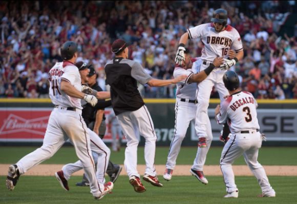 Още по-вълнуващо се разви двубоят между Аризона Дайъмъндбекс и Сан Франциско Джайънтс, приключил при 6:5 на ст. "Чейс Фийлд" във Финикс. До 6-ия ининг гостите от Калифорния водеха с 3:0, а стартерът им Медисън Бумгарнър държеше перфектен мач. Междувременно асът на "гигантите" бе ударил и два соло хоумръна, с които постави нов рекорд за питчер в откриващия ден.