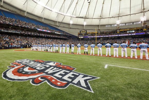 Първата топка в първенството хвърли Крис Арчър (W 1-0), който затвори 7 ининга за "лъчите" с 2 точки от 7 хита. След него от булпена излязоха трима риливъри, като Алекс Коломе (S 1) подпечата успеха с безупречна защита в 9-ия.