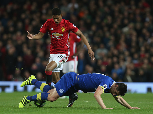 Евертън обаче постепенно започна да надига глава и в 21-ата минута Кевин Миралас стреля от малък ъгъл и принуди Давид де Хеа да се намесва решително. При последвалия корнер Ашли Уилямс продължи с глава към Фил Ягиелка, който се пребори с Маркос Рохо и с гръб към вратата успя да мушне топката през краката на Де Хеа за 0:1.