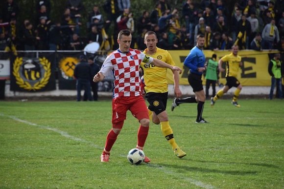 Гостите, подкрепяни от половината публика по трибуните, искаха да се доближат до лидера в първенството, но чисти положения липсваха през всичките 90 минути, които ще се запомнят с два далечни удари. Най-интересното се случи в продължението на срещата, когато Даниел Стефанов от "жълто-черните" бе изгонен. Това се случи, след като феновете на домакините хвърлиха по него бутилка от два литра на Фанта. Играчът взе пластмасовото шише и с всичка сила го върна в трибуните. Тасев се посъветва със своя помощник и показа червен картон за играча на гостите. Стефанов беше толкова ядосан, че с всичка сила се засили към сектора на домакините, за да търси саморазправа с тях. Той се качи на ограда, за да влиза в сектора и да търси ръкопашен бой с феновете, като се наложи двама полицаи да го спират.