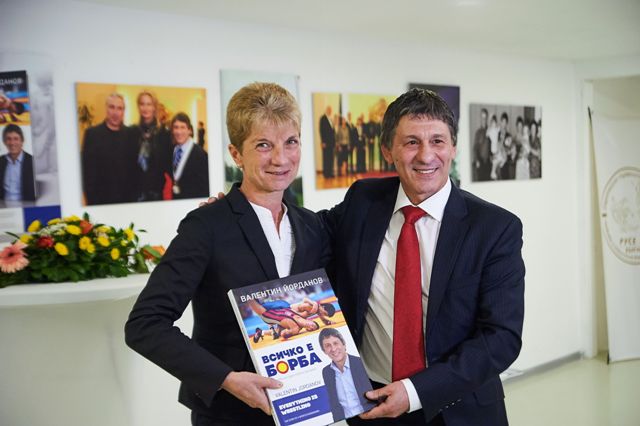 Министър Дашева получи първия екземпляр от книгата с автограф и посвещение от Валентин Йорданов, за когото каза много топли думи: „Познавам го като голям шампион, легенда не само на