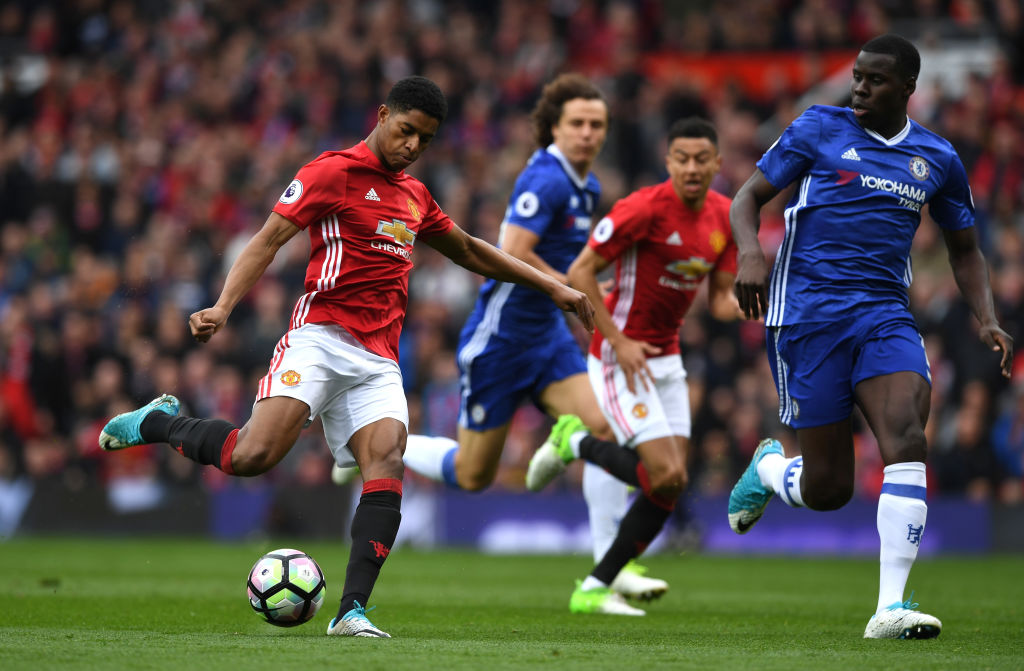 Манчестър Юнайтед стартира отлично дербито на "Олд Трафорд". Още в петата минута Лингард открадна топката от Давид Луис и изведе Рашфорд. Младият нападател забави удара и топката отиде встрани от вратата. Две минути по-късно обаче Рашфорд отново бе изведе отлично, този път от Ерера, и прати топката покрай Бегович за 1:0.
