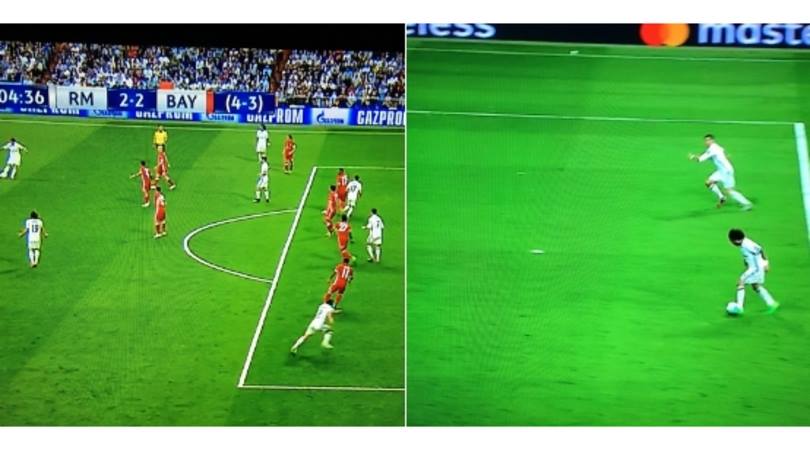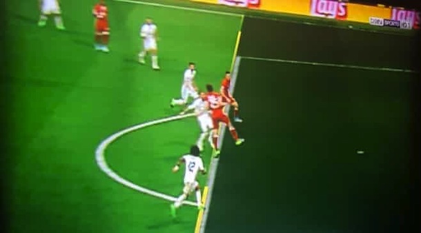 110-ата минута: Нов гол от засада на Кристиано. Повторенията показват, че португалецът е пред линията на топката. Обяснение за грешката на страничния съдия е, че той е доста закъснял, както се вижда от кадъра.