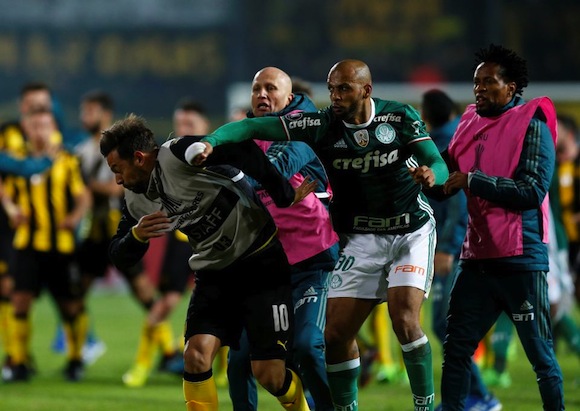 След последния съдийски сигнал на срещата на терена настъпи хаос, като играчите се сбиха помежду си, а феновете по трибуните също се включиха в безредиците.