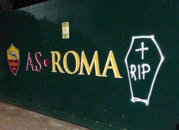 Тифози на Лацио се подиграха с тима на Рома, след като инсценираха погребение на "вълците". В неделя "небесносините" разбиха големия си съперник с 3:1 в среща от Серия "А", с което почти сигурно го лишиха от трофей този сезон. След това през нощта на базата на Рома са се появили графити, изобразяващи ковчег и силуети на хора, а до тях са били запалени свещи и е имало жълто-червен кръст с надпис "R.I.P Roma". (Почивай в мир, Рома).