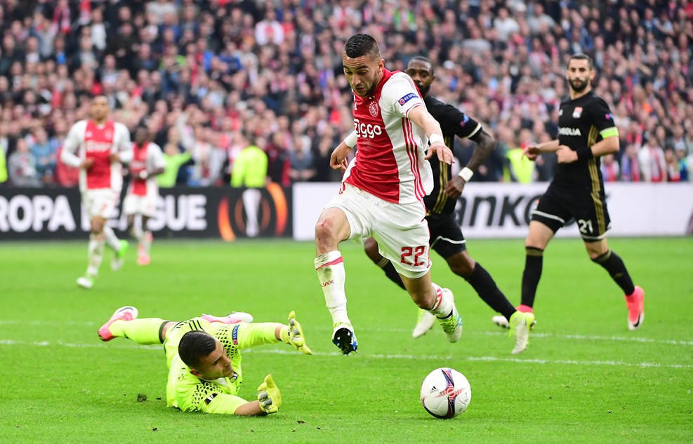 Аякс и Лион изиграха двубой, който се превърна в наслада за футболните фенове на "Амстердам Арина". Холандският гранд спечели с 4:1 в първи мач от полуфиналите на Лига Европа. Срещата бе изпълнена с голови положения и постоянни атаки и към двете врати.