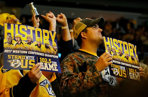 Отборът на Нешвил Предатърс се класира за финала в Националната хокейна лига за пръв път в историята. В мач номер 6 от финала в Западната конференция "хищниците" се наложиха с 6:3 над гостуващия Анахайм Дъкс и след 4:2 победи в серията за първи път в 19-годишното си съществуване ще спорят за купа "Стенли".